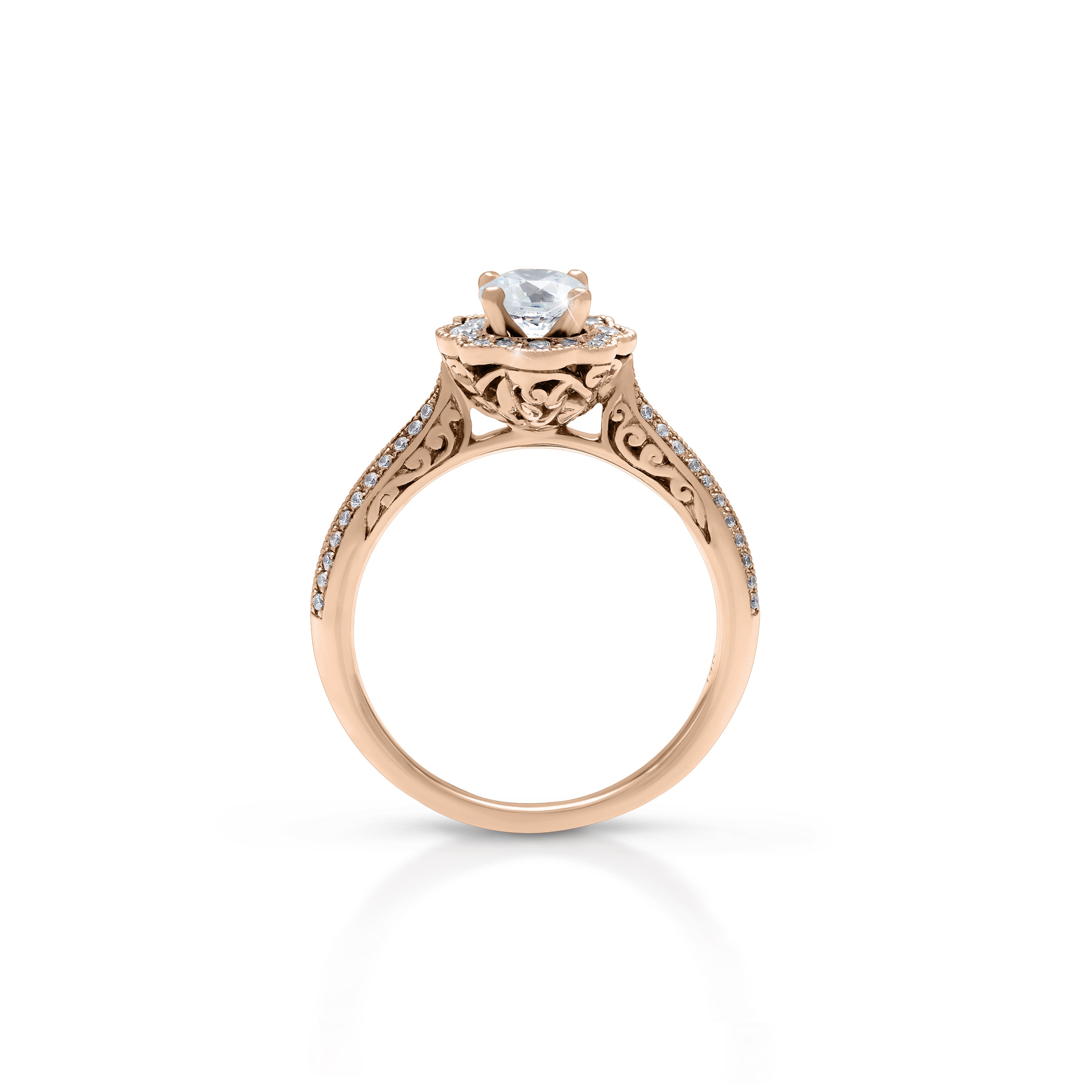 18K/ 14K Gold 1.6 mm LH Vintage Carved Scroll Floral Basket Halo with Diamond Side Rows Engagement Ring