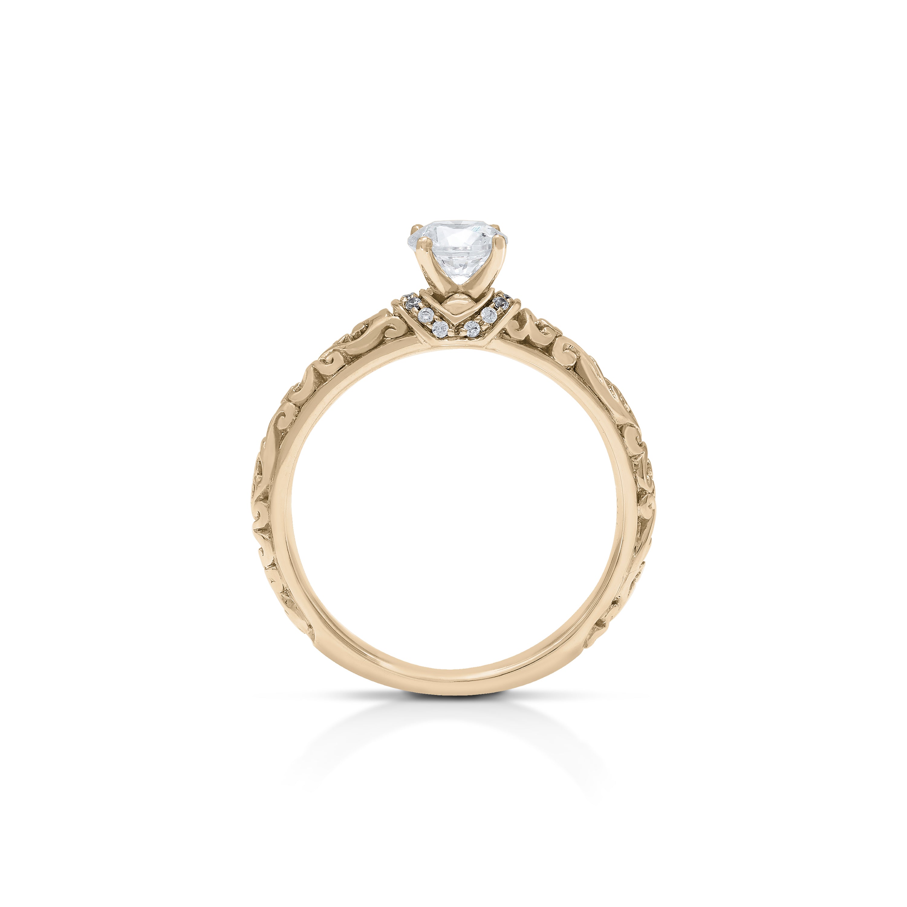 18K/ 14K Gold 2.3 mm LH Carved Scroll Solitaire with V-Shaped Diamond Accents Engagement Ring
