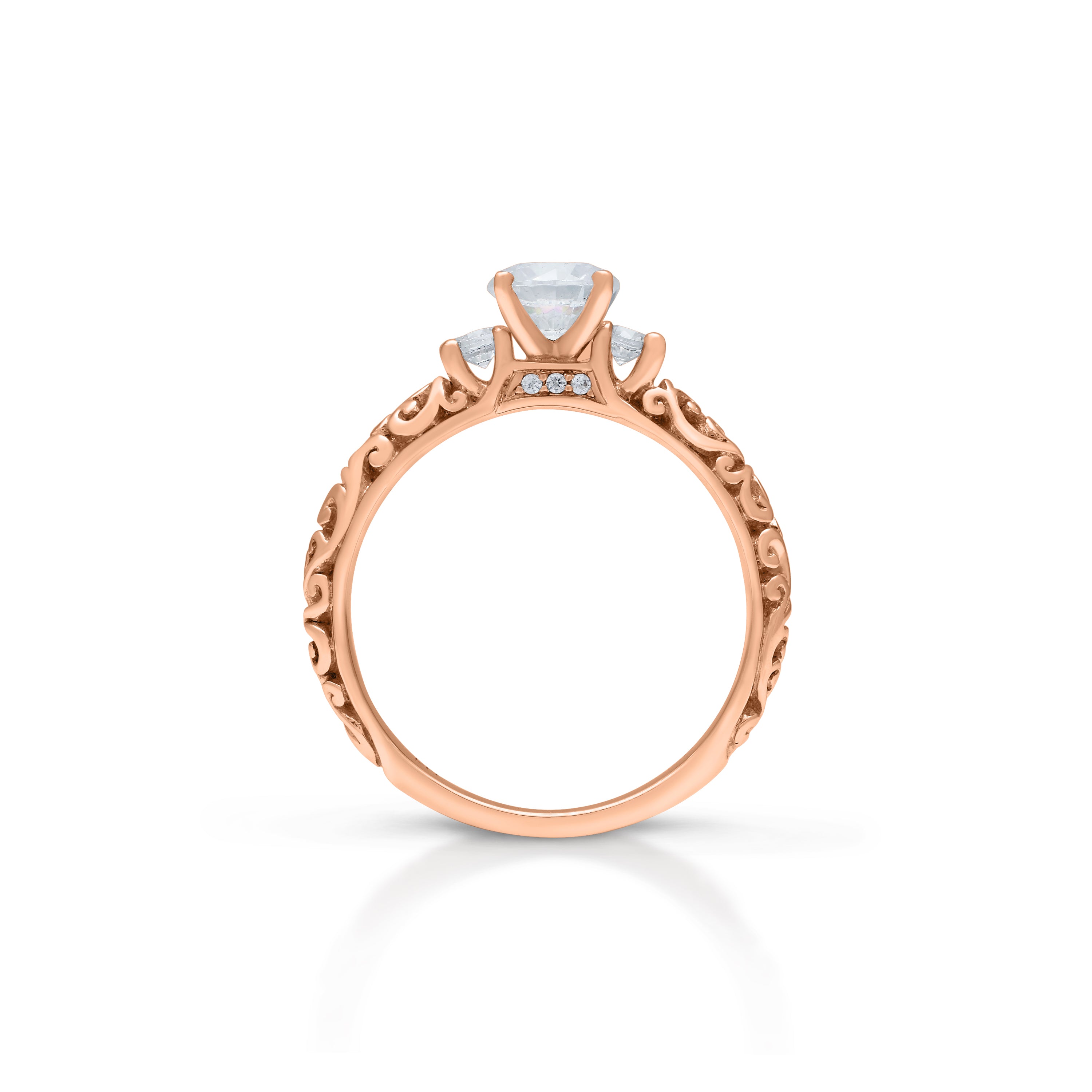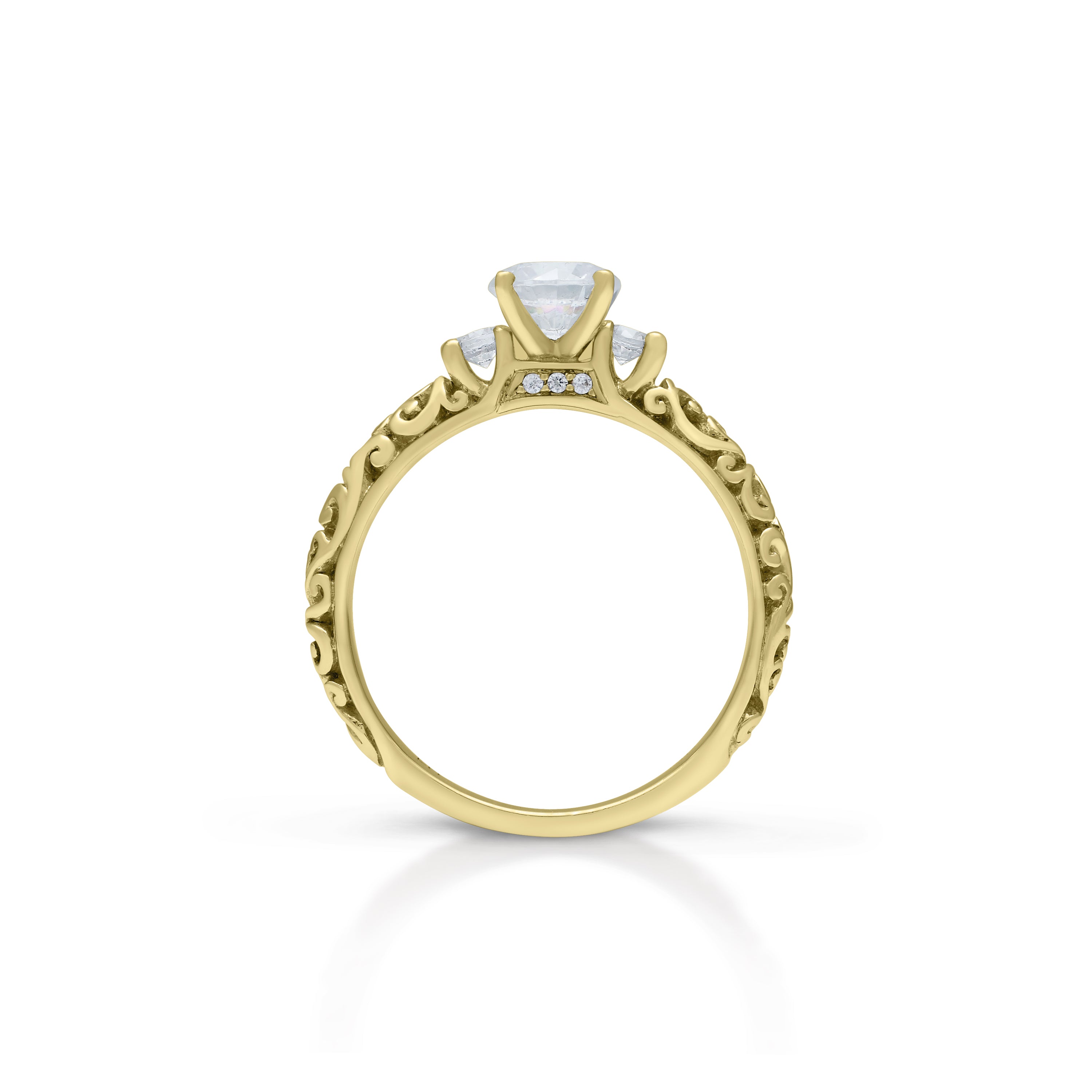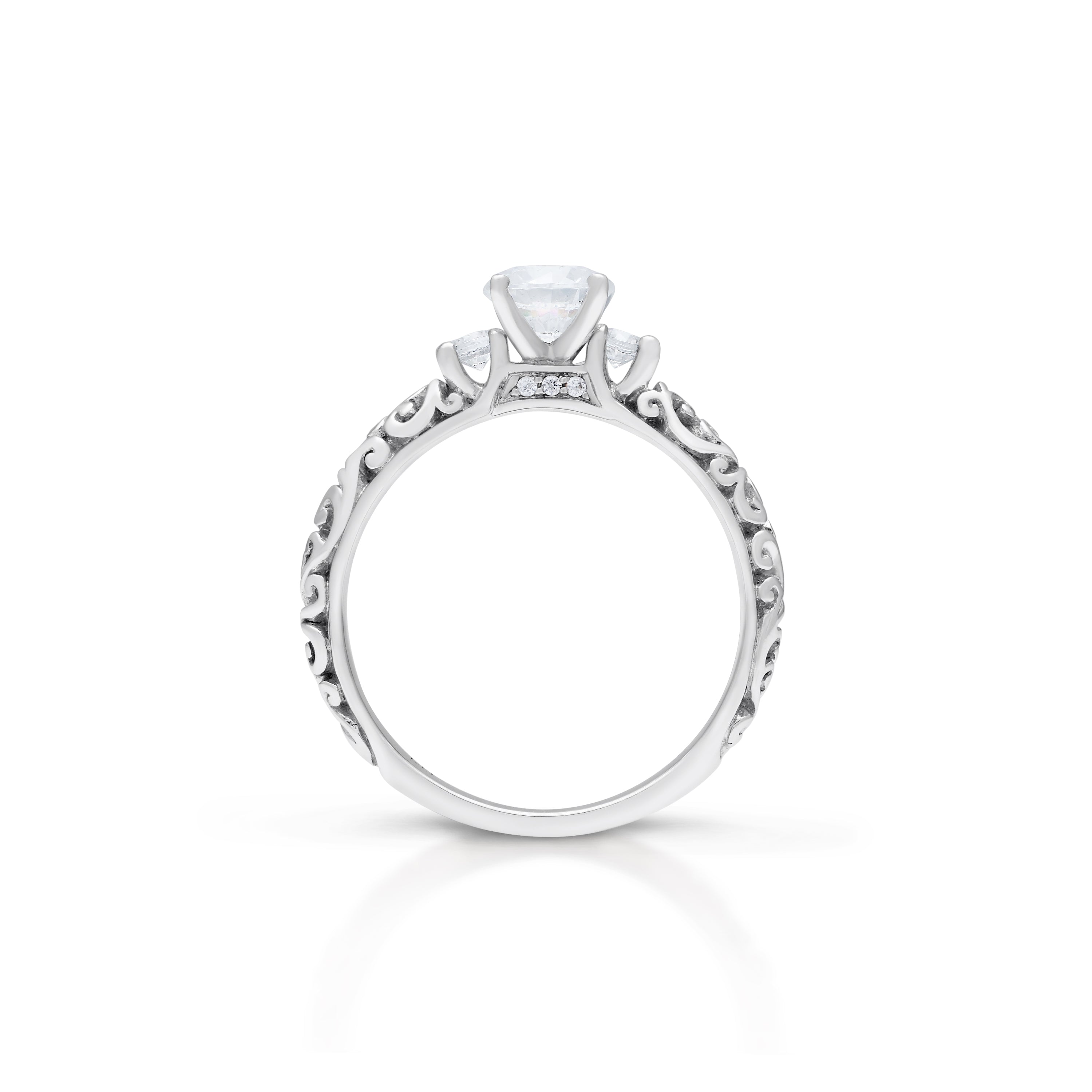 This stunning, precious Lois Hill Hand-Carved Scroll Repousse Bostonian Engagement Ring is a masterpiece of exquisite craftsmanship.   Meticulously Hand-Carved LH Scroll Repousse details adorn the band, elegantly embracing two 0.12 ct side stones, symbolizing the enduring bond between two souls, while evoking a sense of timeless beauty.