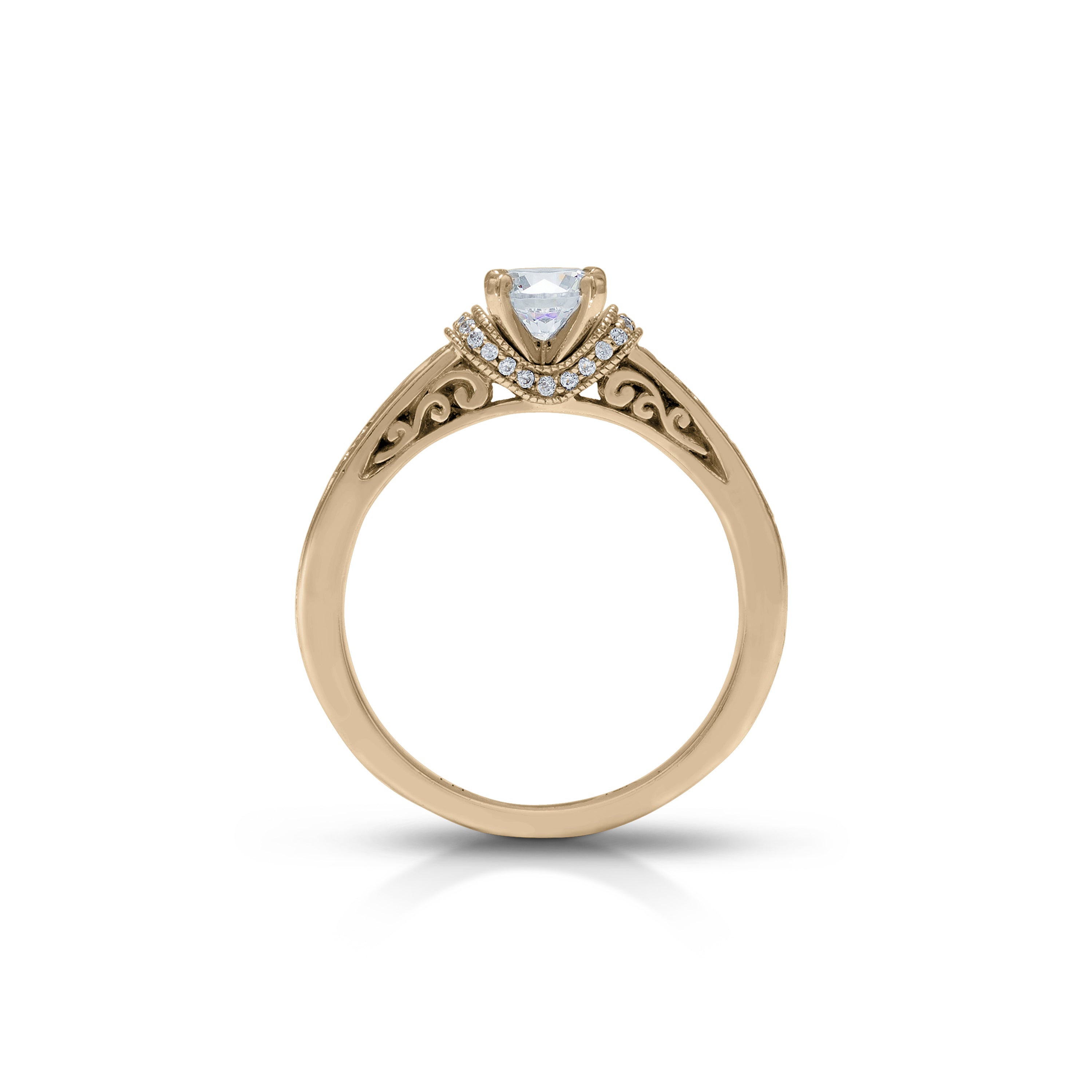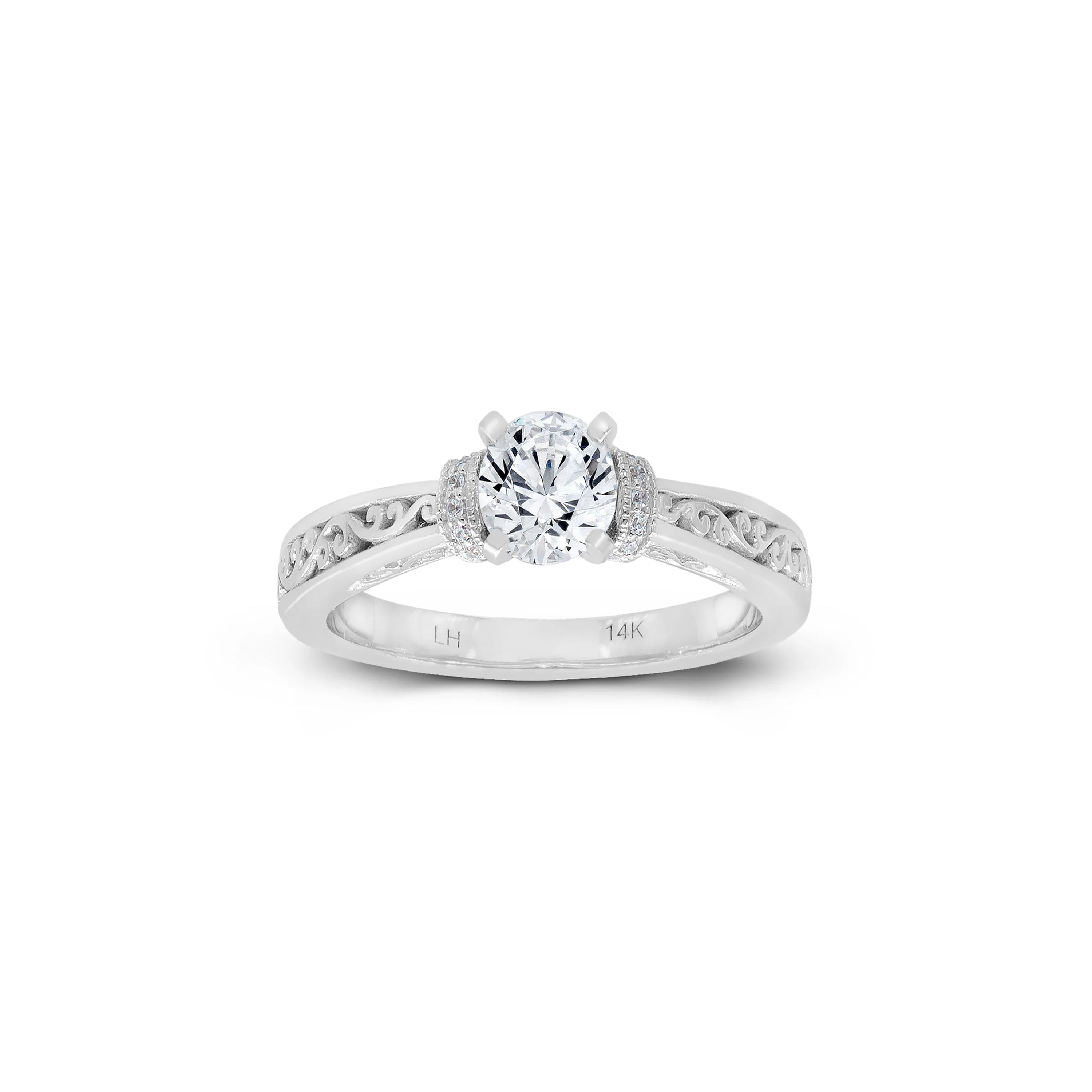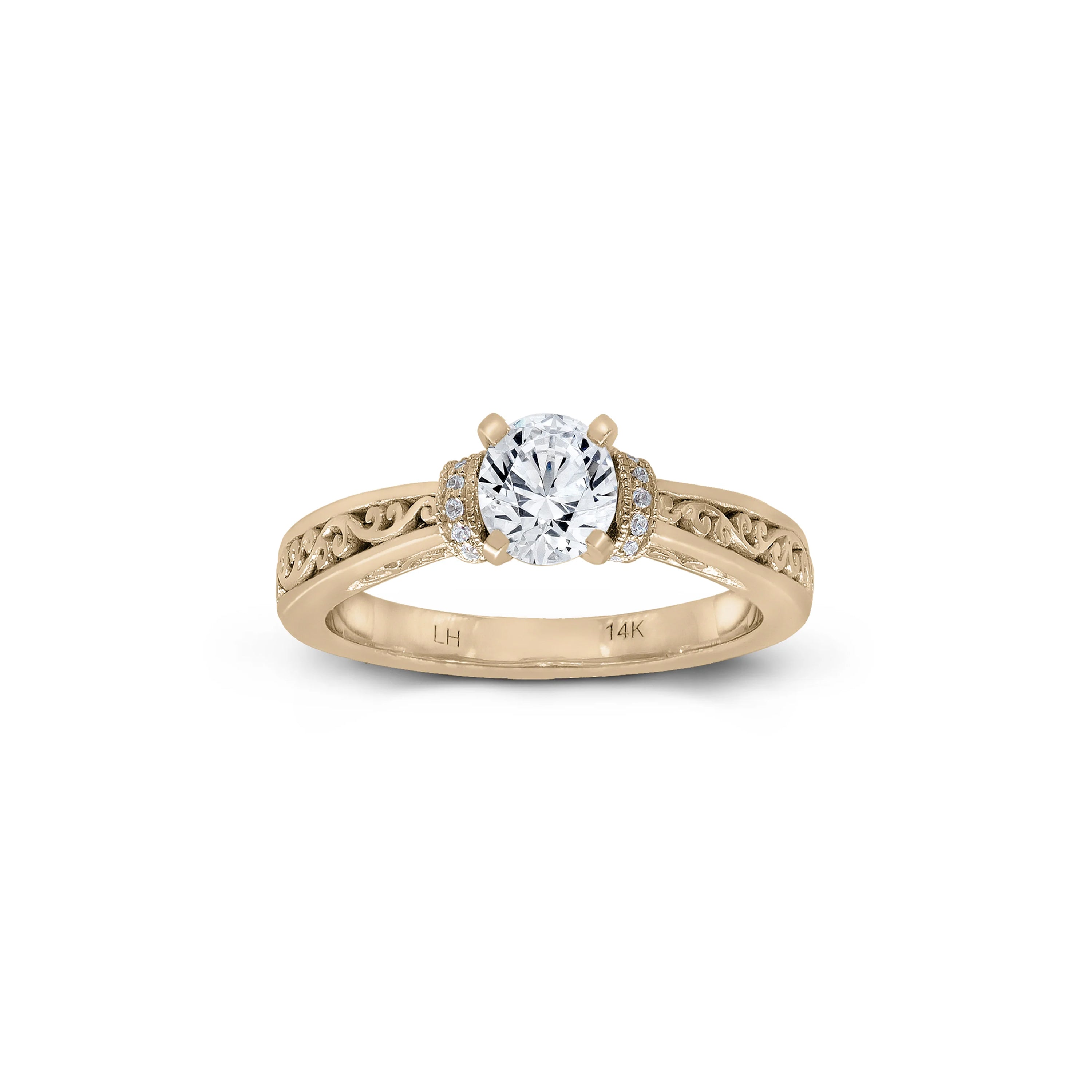 Experience the eternal allure and captivating beauty of the Lois Hill Classic Scroll Solitaire Engagement Ring with Diamond Accents.  Meticulously crafted by skilled artisans, this exquisite piece is a testament to artisanal mastery.  The hand-carved LH scroll weaves a tale of timeless romance and enchanting elegance.