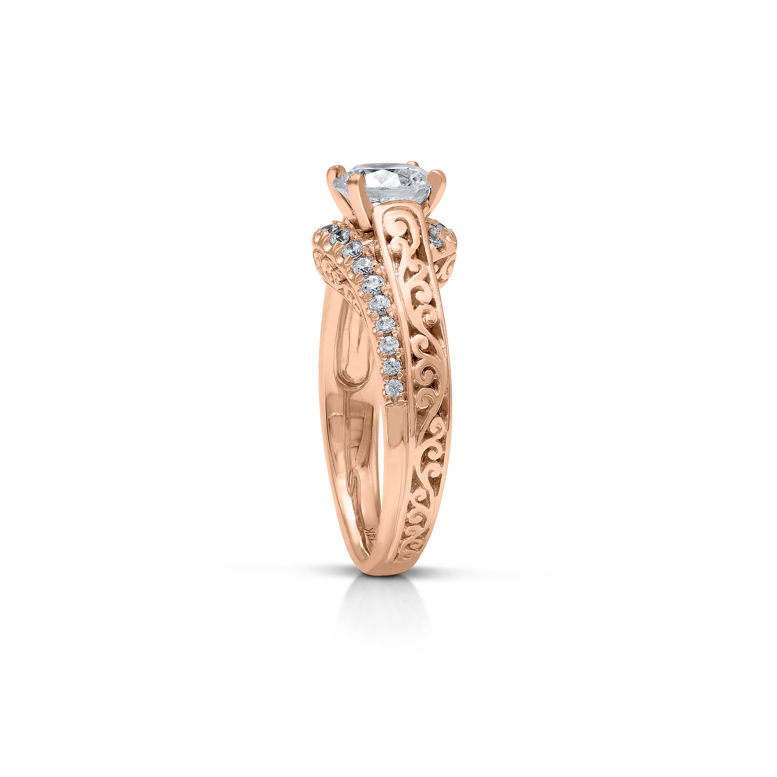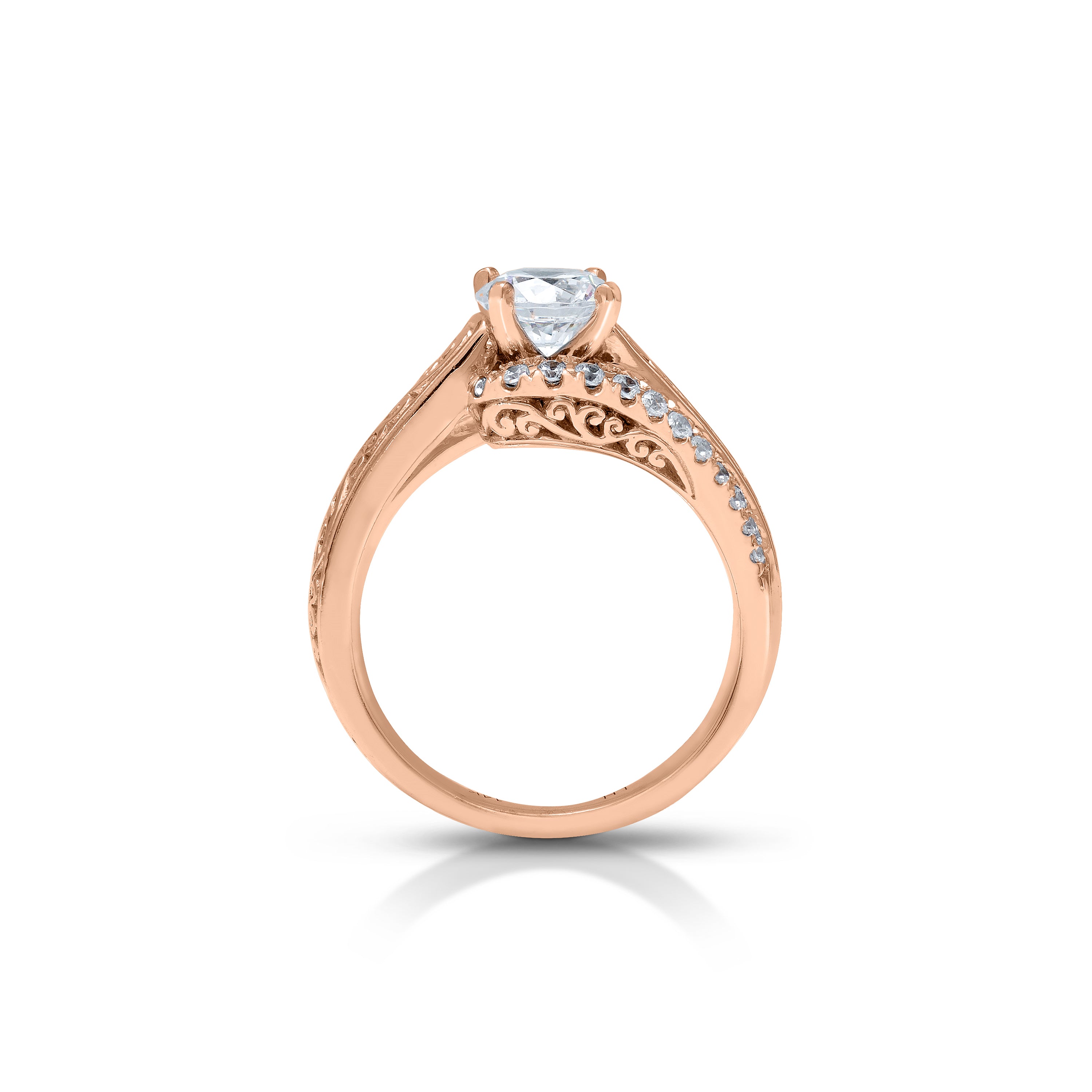 Indulge in timeless elegance with the LH Classic Scroll Solitaire with Pave Accent Engagement Ring.  The intricate LH classic scroll gracefully symbolizes everlasting love, while sparkling pave diamond swirl accents add an enchanting glimmer, capturing the essence of an enduring love story.