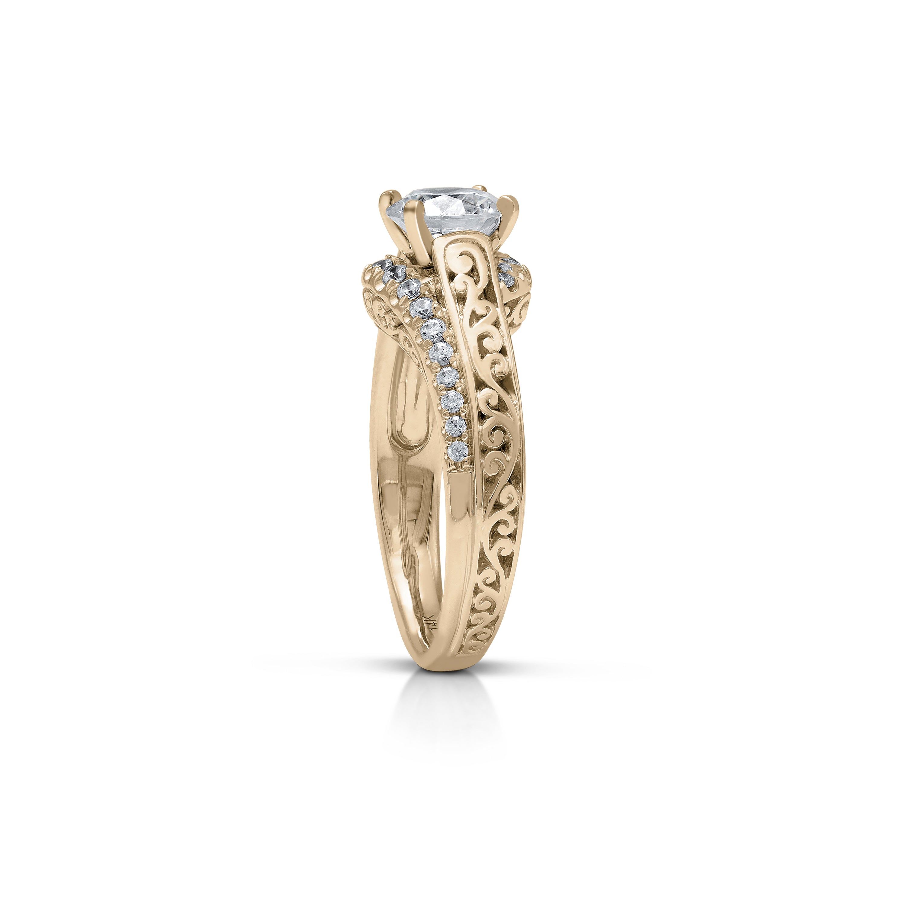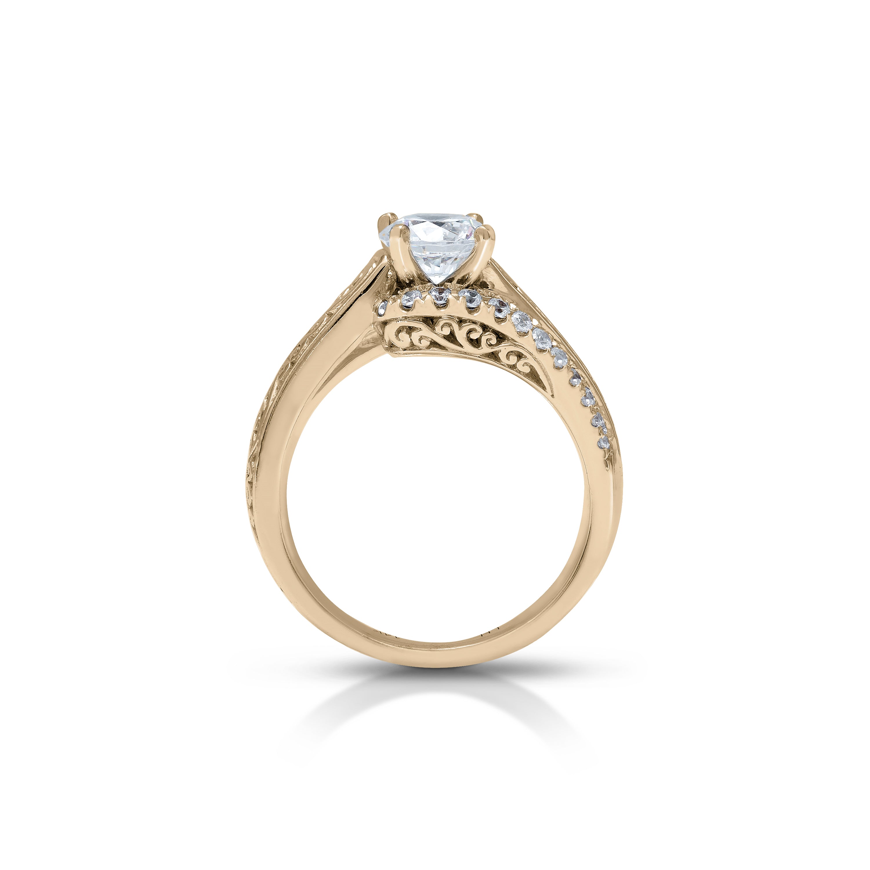 18K/ 14K Gold 4.3 mm LH Classic Scroll Round Diamond with Diamond Row Accents Engagement Ring