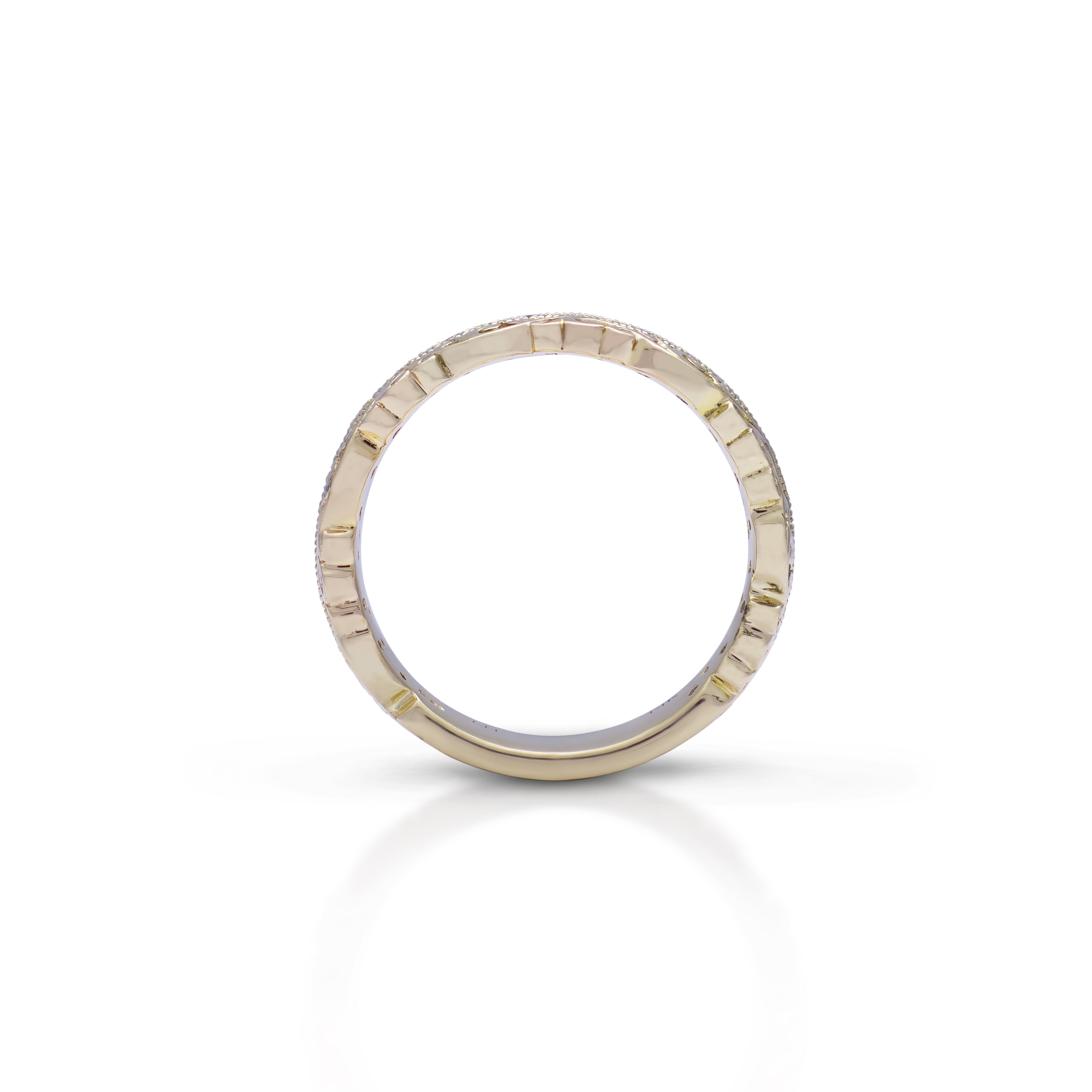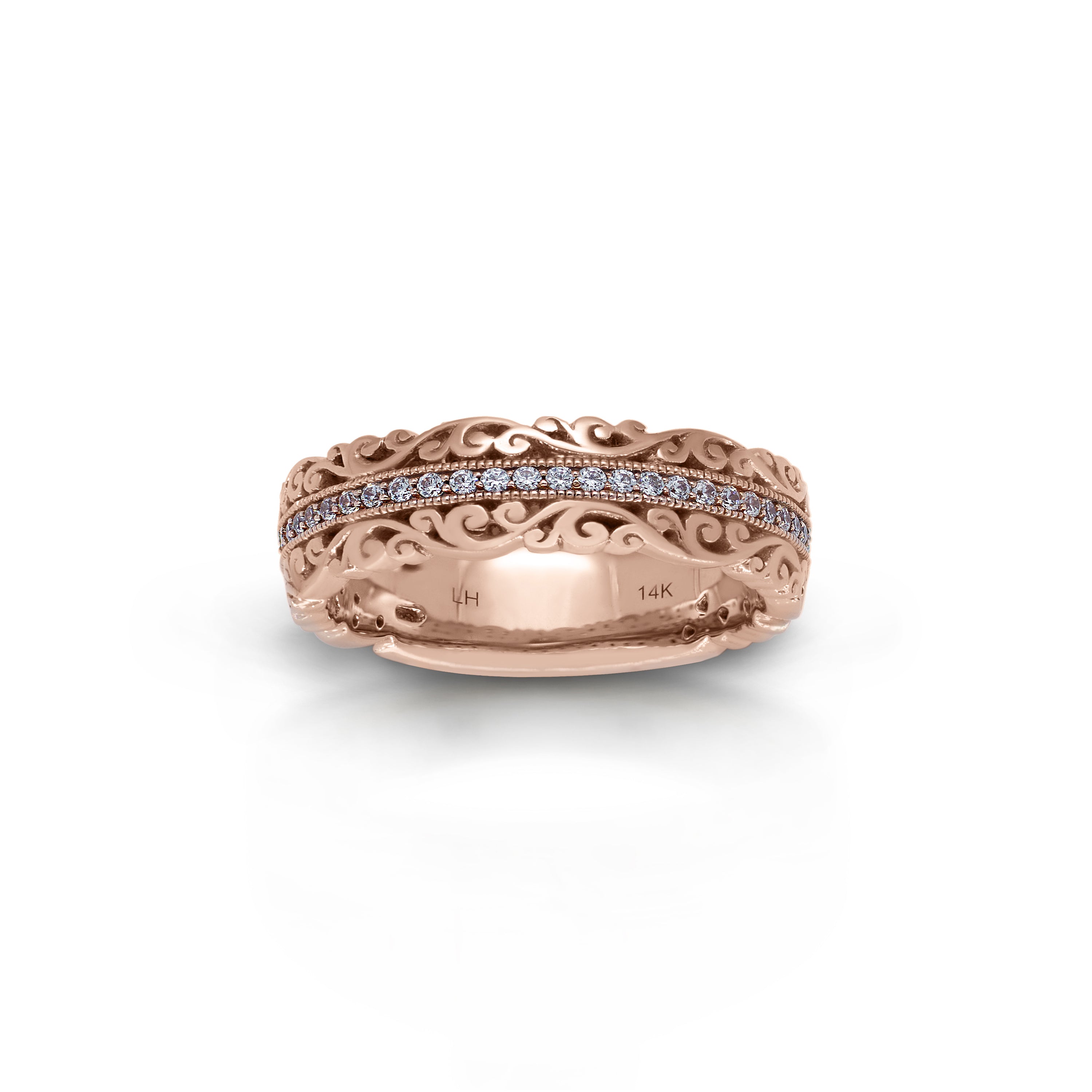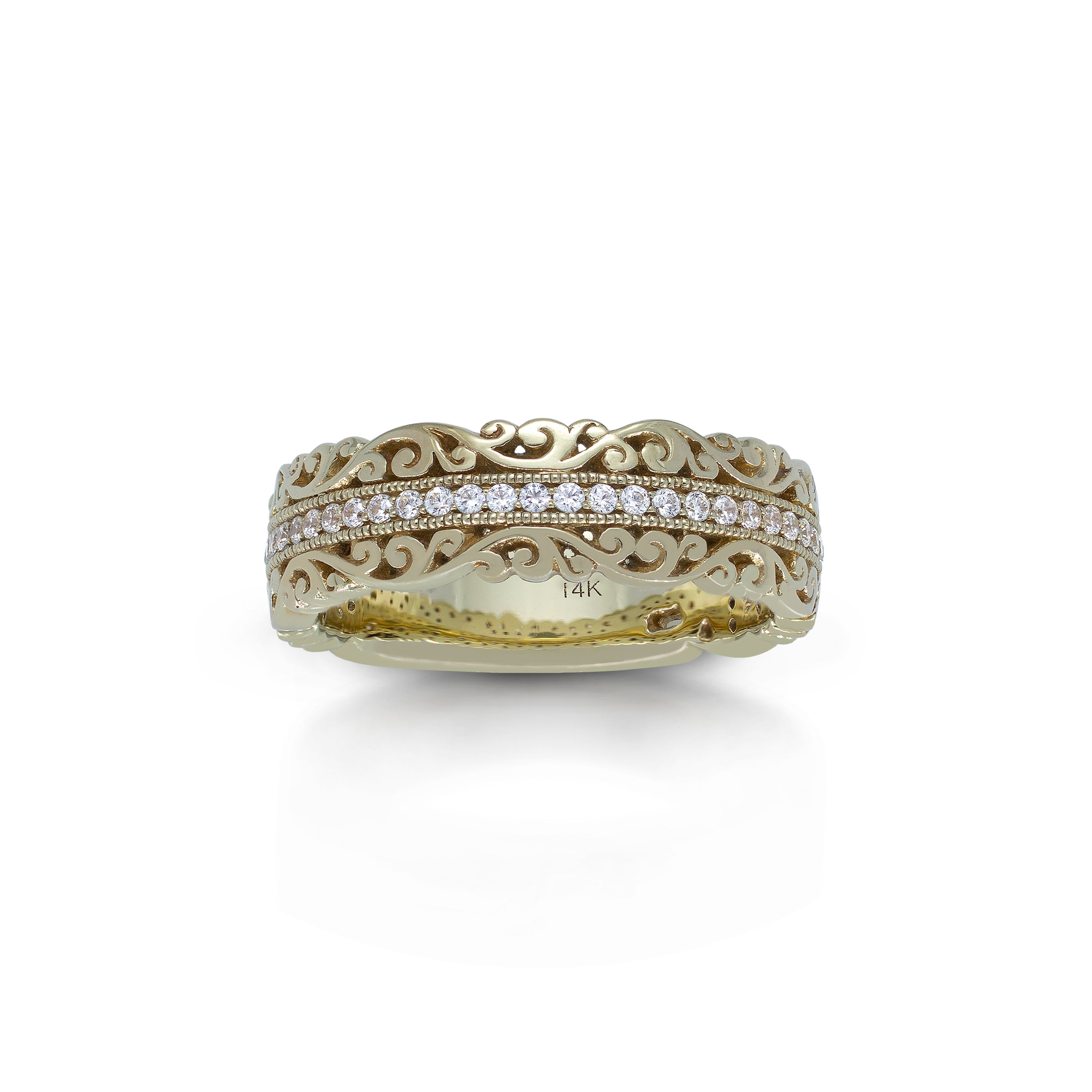 18K/ 14K Gold 6.4 mm LH Vintage Scalloped Scroll Wide Band with Diamond Row