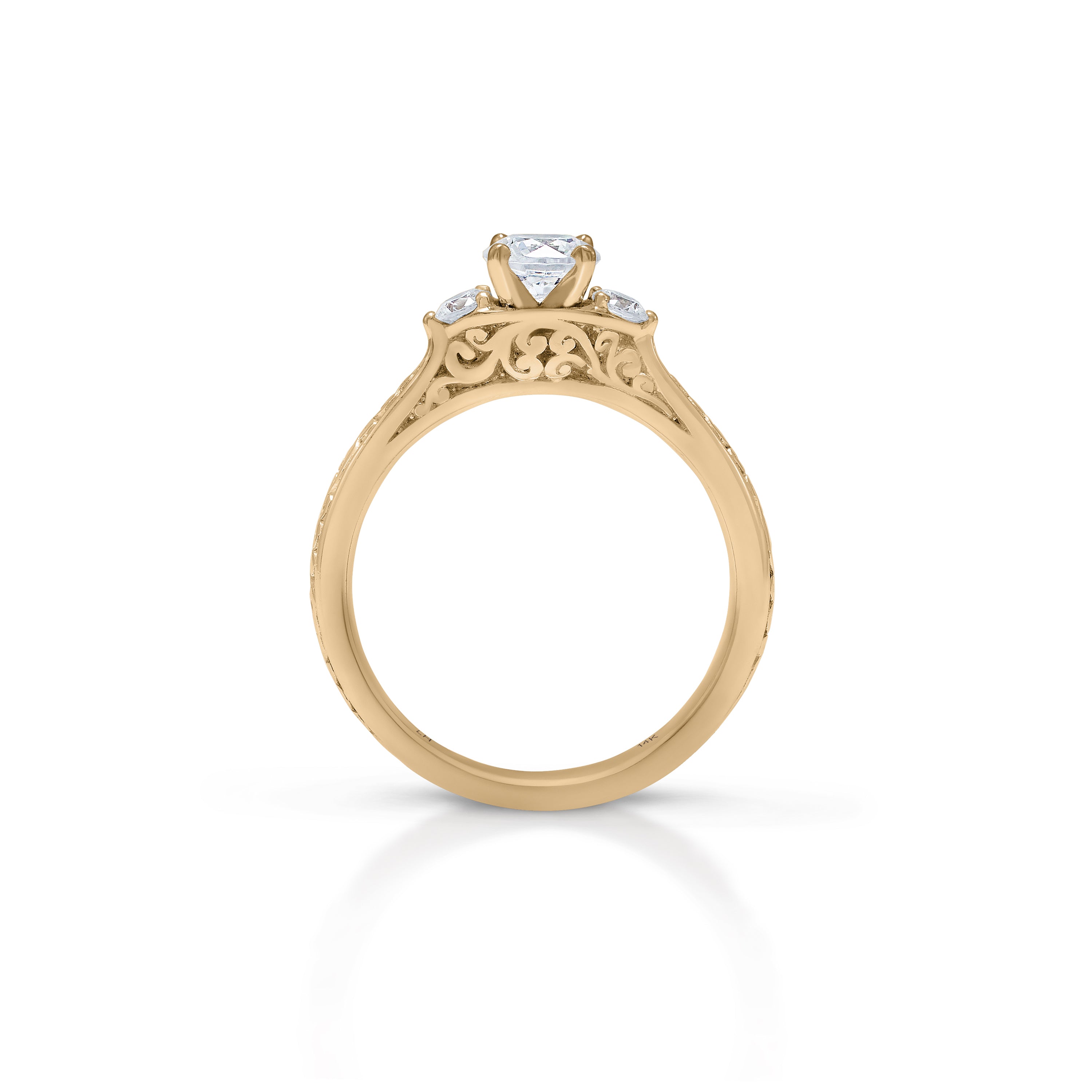 18K/ 14K Gold 2.9 mm LH Carved Scroll Bostonian Engagement Ring