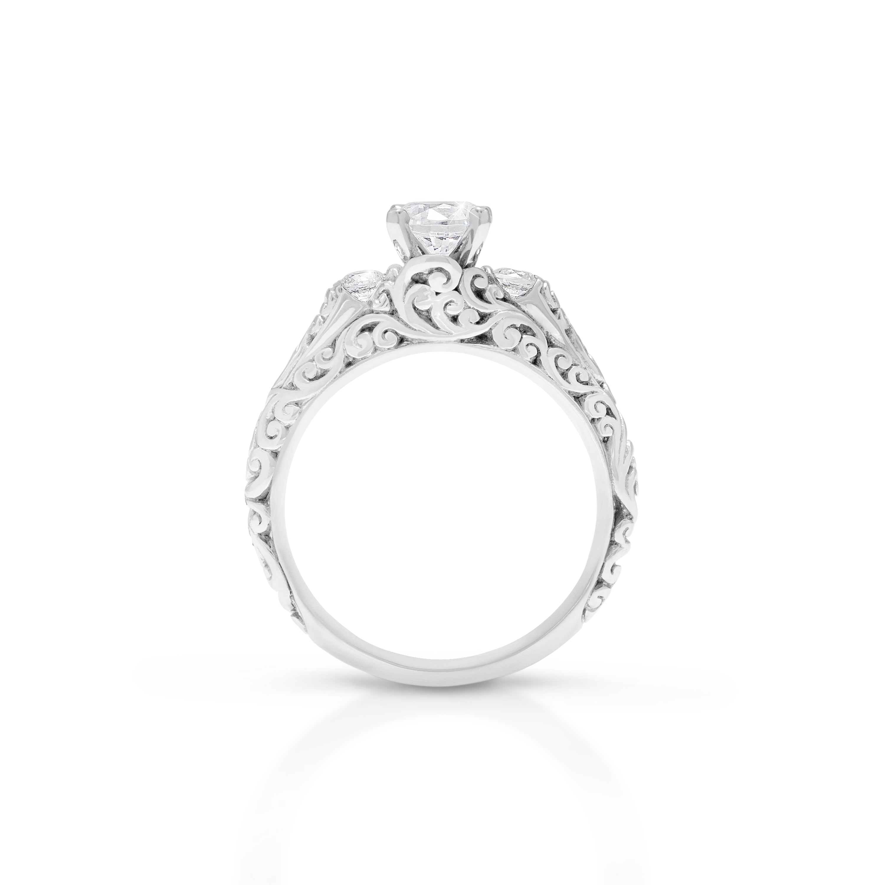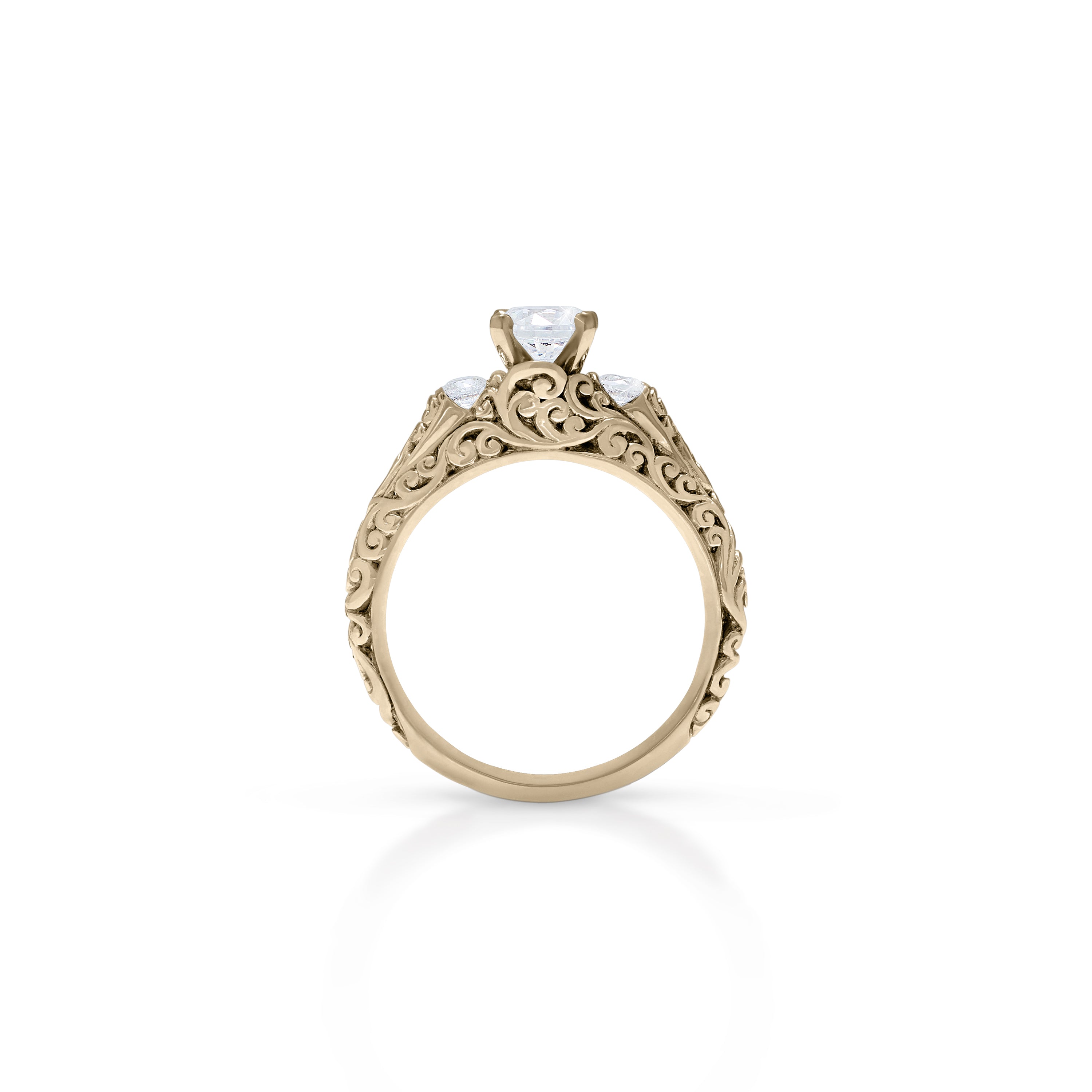 18K/ 14K Gold 2.3 mm LH Carved Scroll Bostonian Engagement Ring
