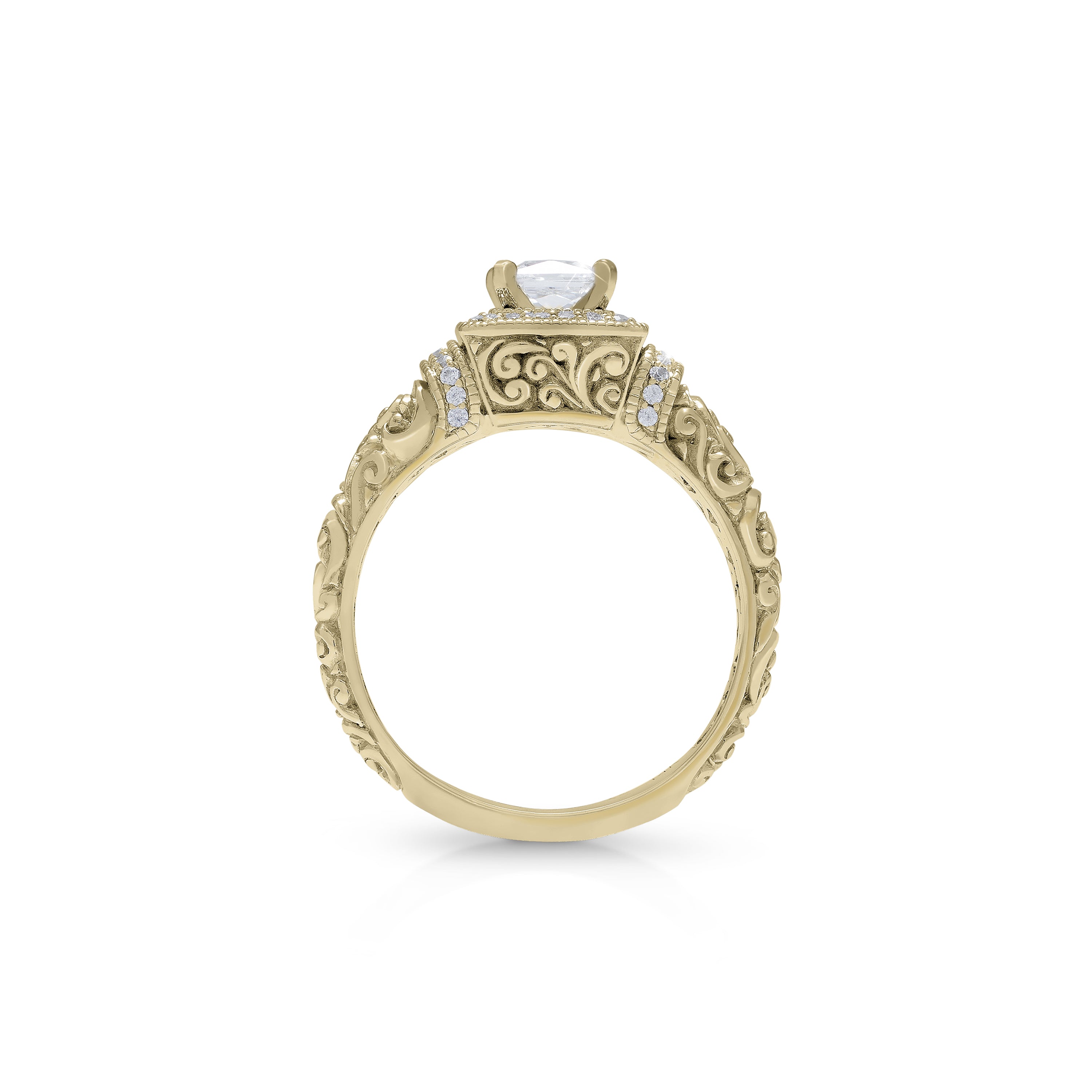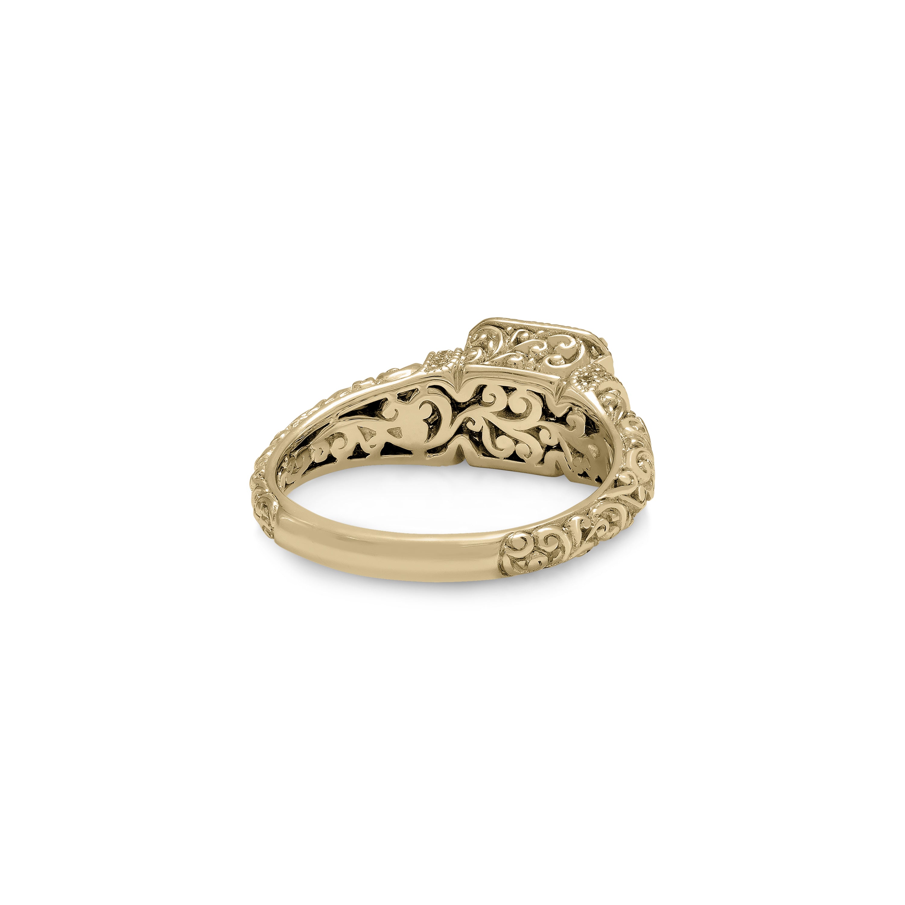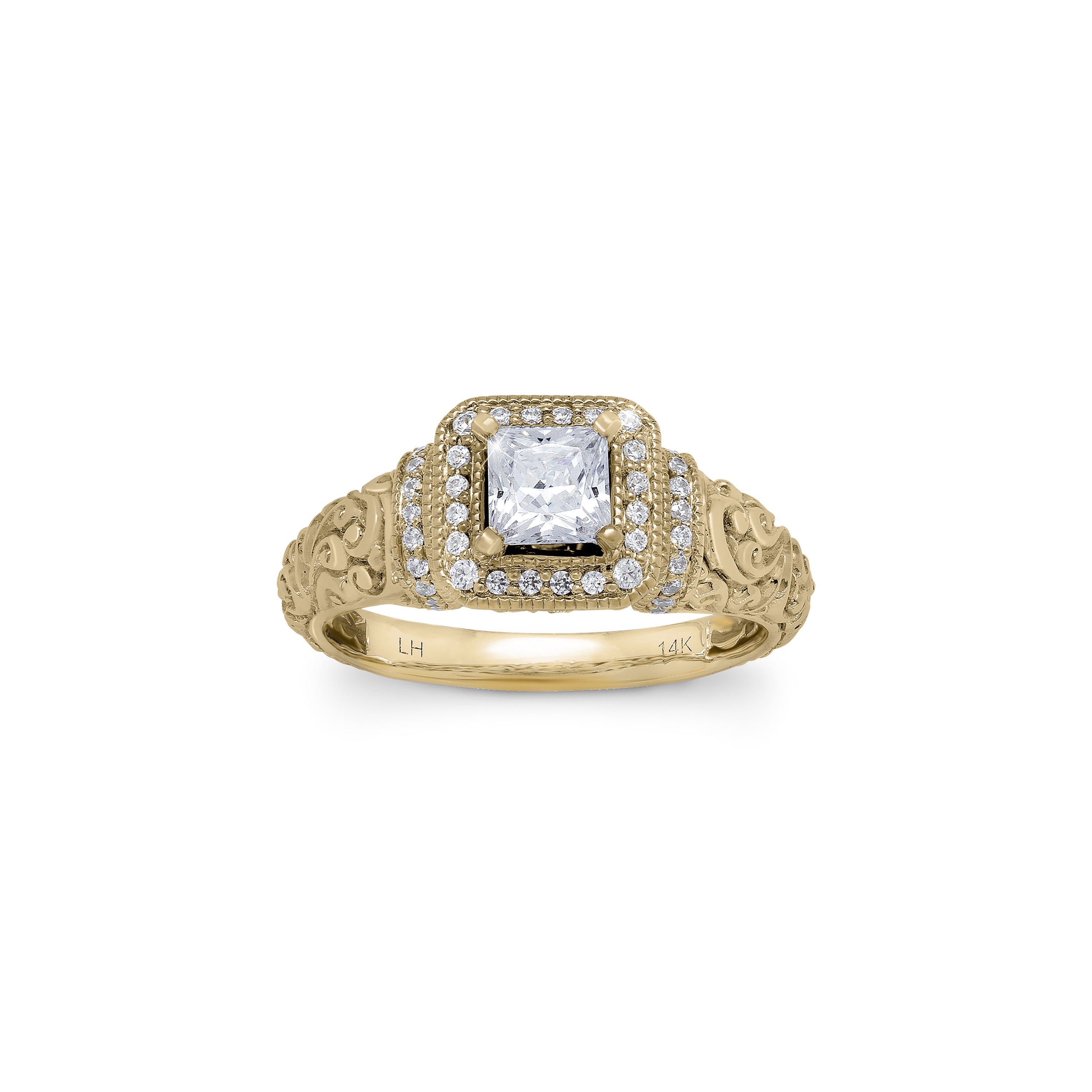 18K/ 14K Gold 3.2 mm LH Vintage Repousse Square Halo with Diamond Accents Engagement Ring