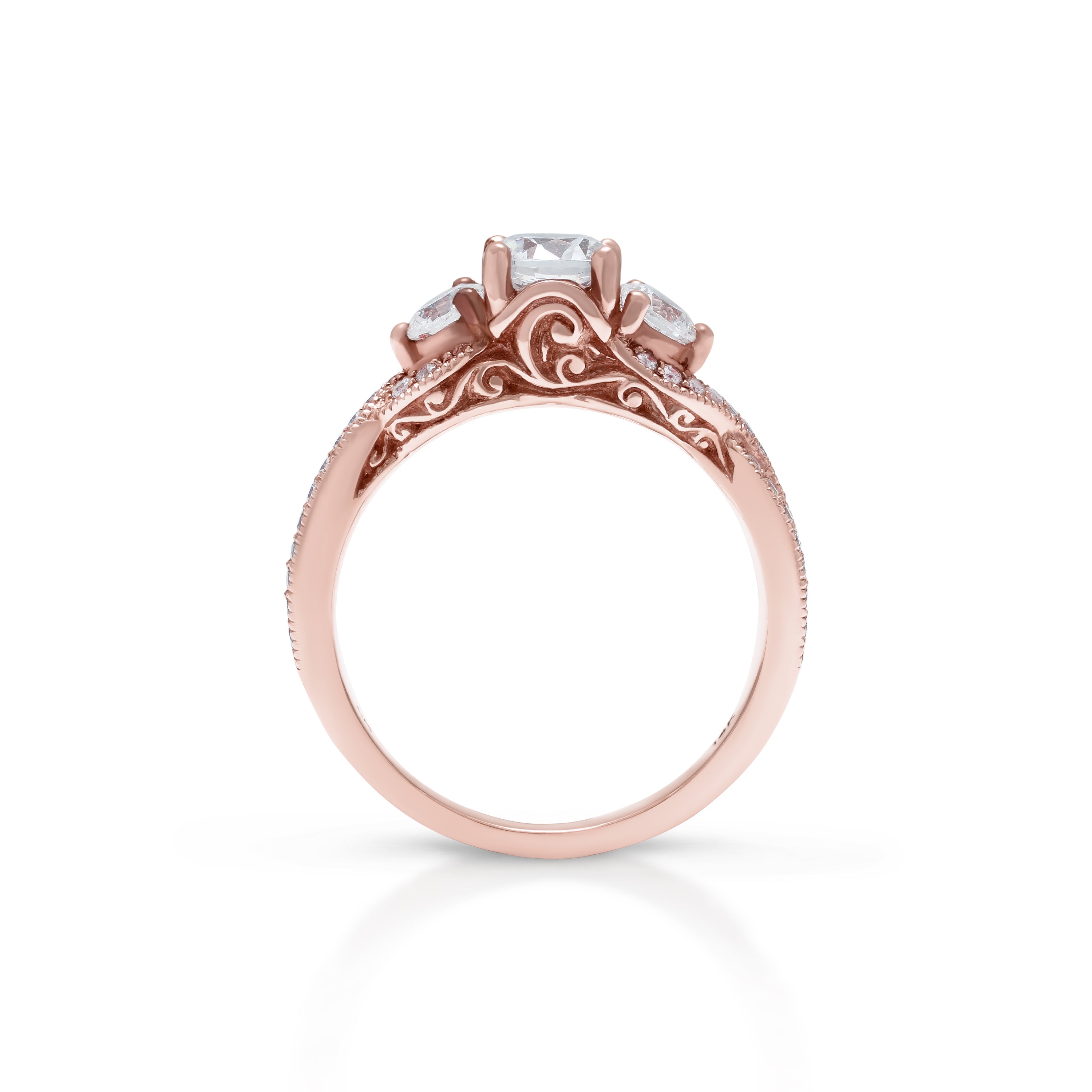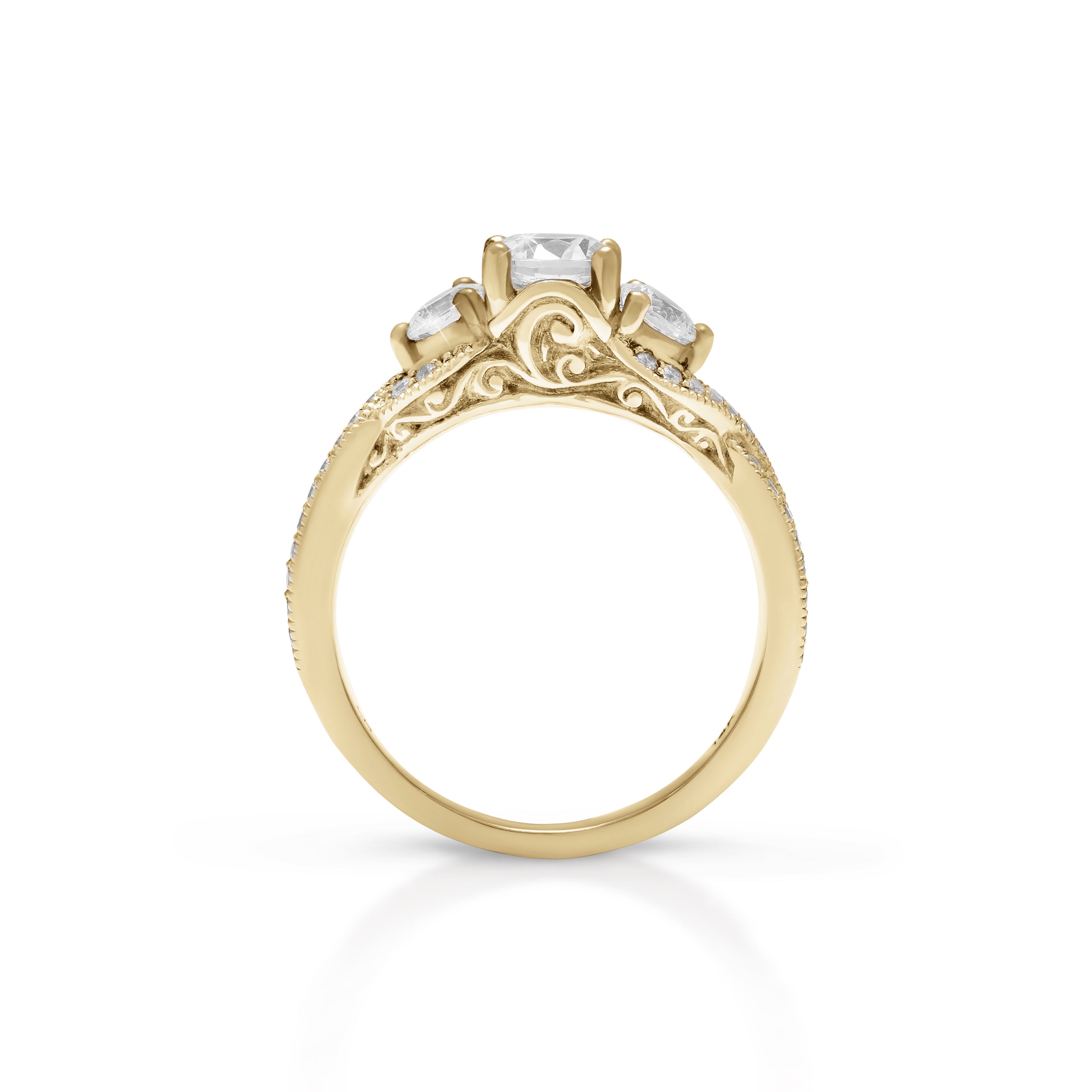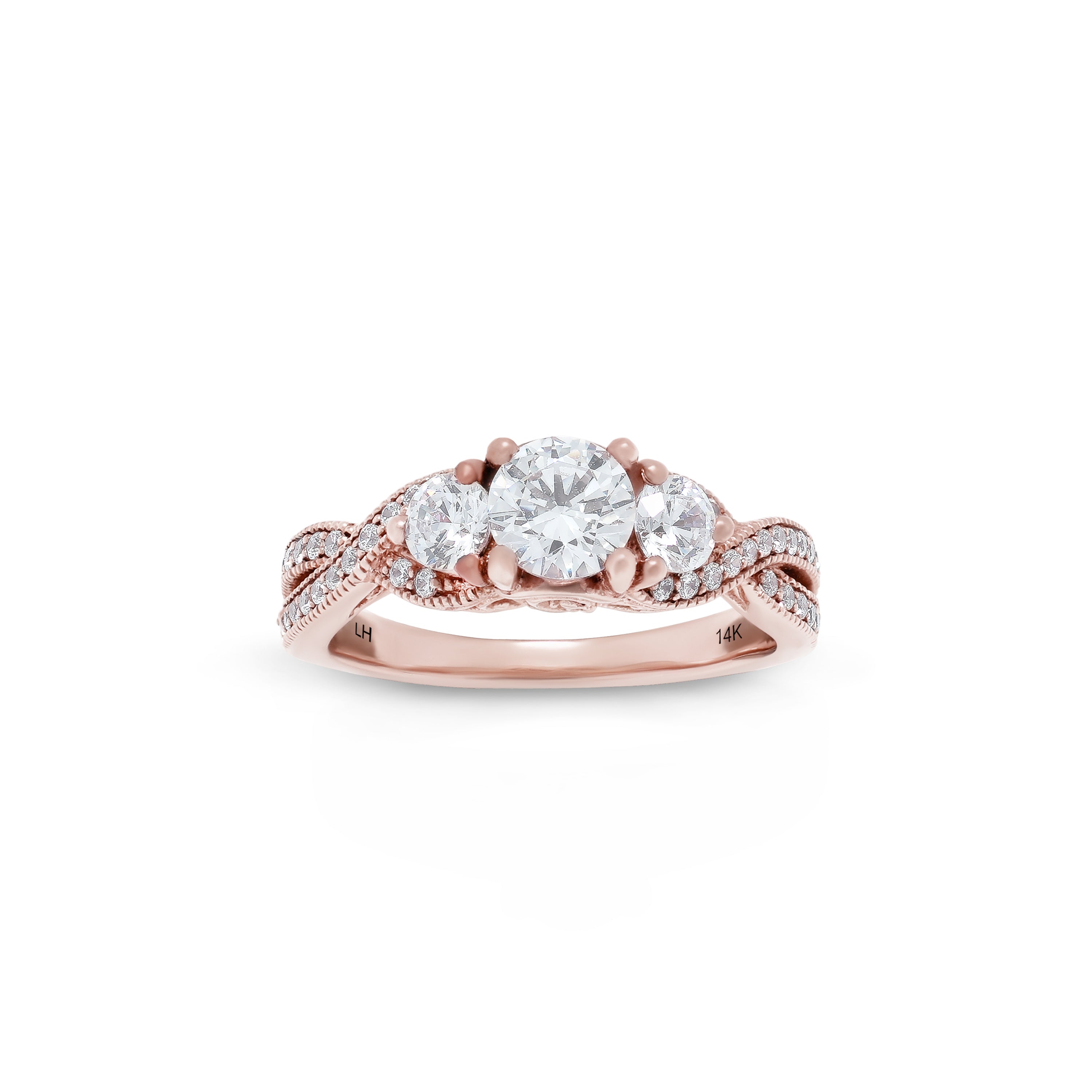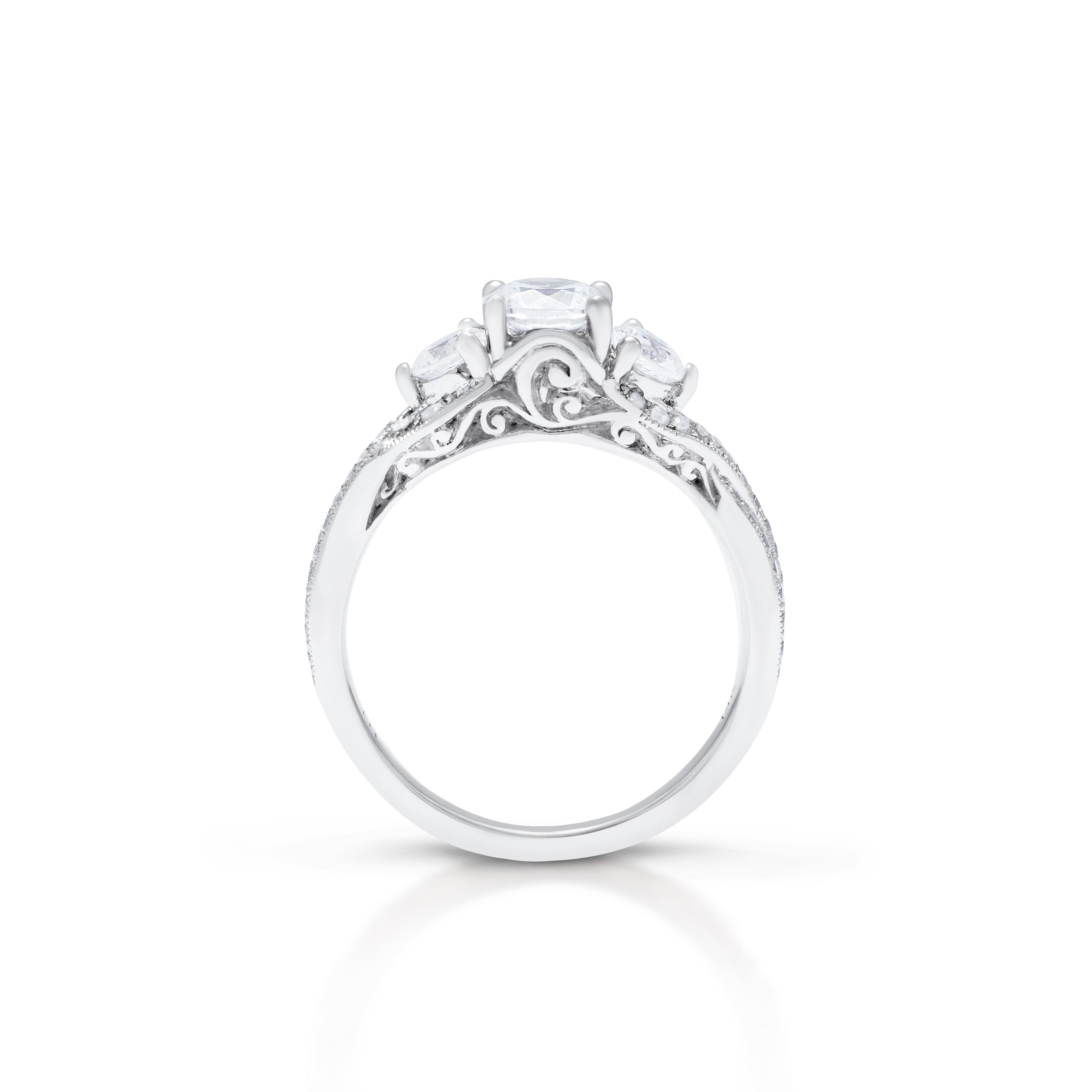 This Lois Hill Scroll Repousse, Diamond Twist, Bostonian Engagement Ring is a stunning symbol of love and commitment.   Crafted with intricate scrollwork, featuring a twisted band adorned with 0.6 ct sparkling diamonds, this exquisite ring blends timeless elegance with contemporary design, reflecting everlasting love.