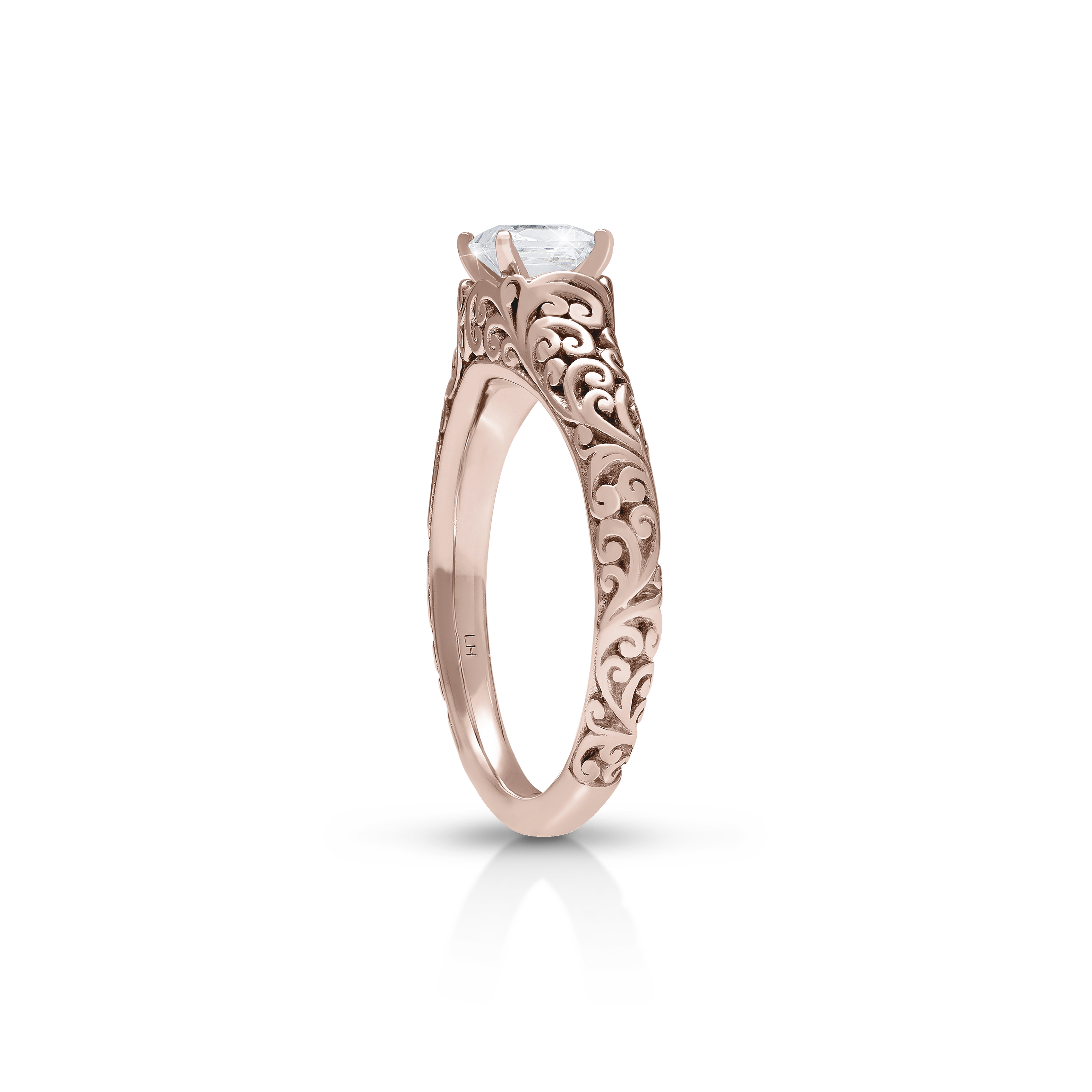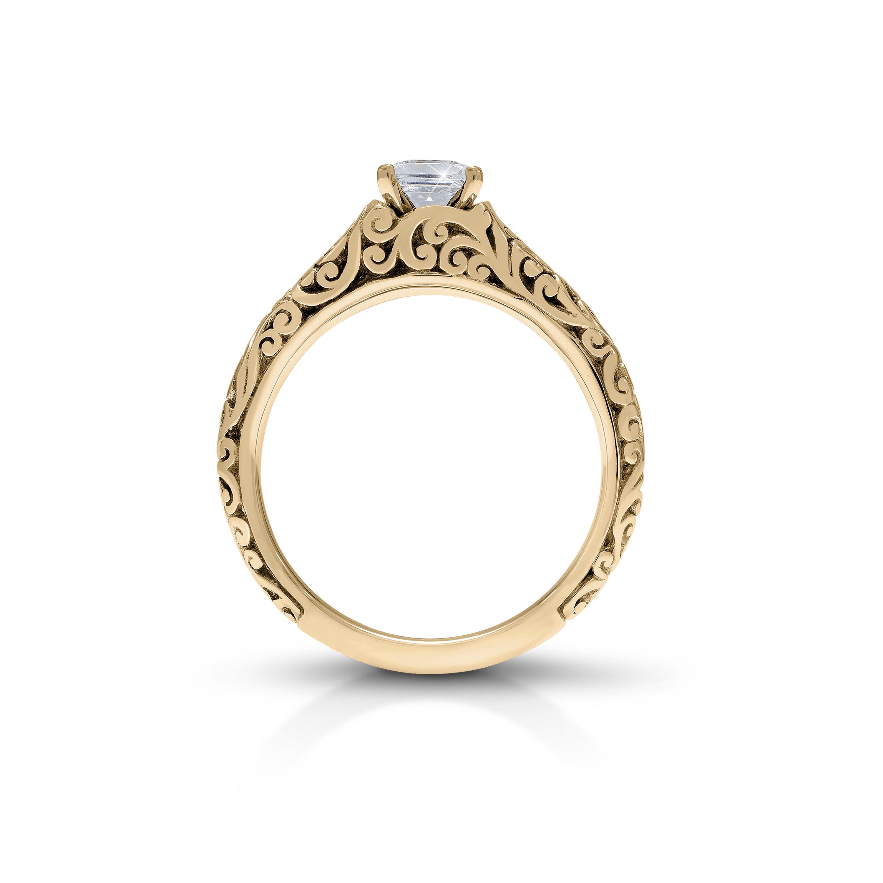 18K/ 14K Gold 2.6 mm LH Carved Scroll Solitaire Vintage Engagement Ring
