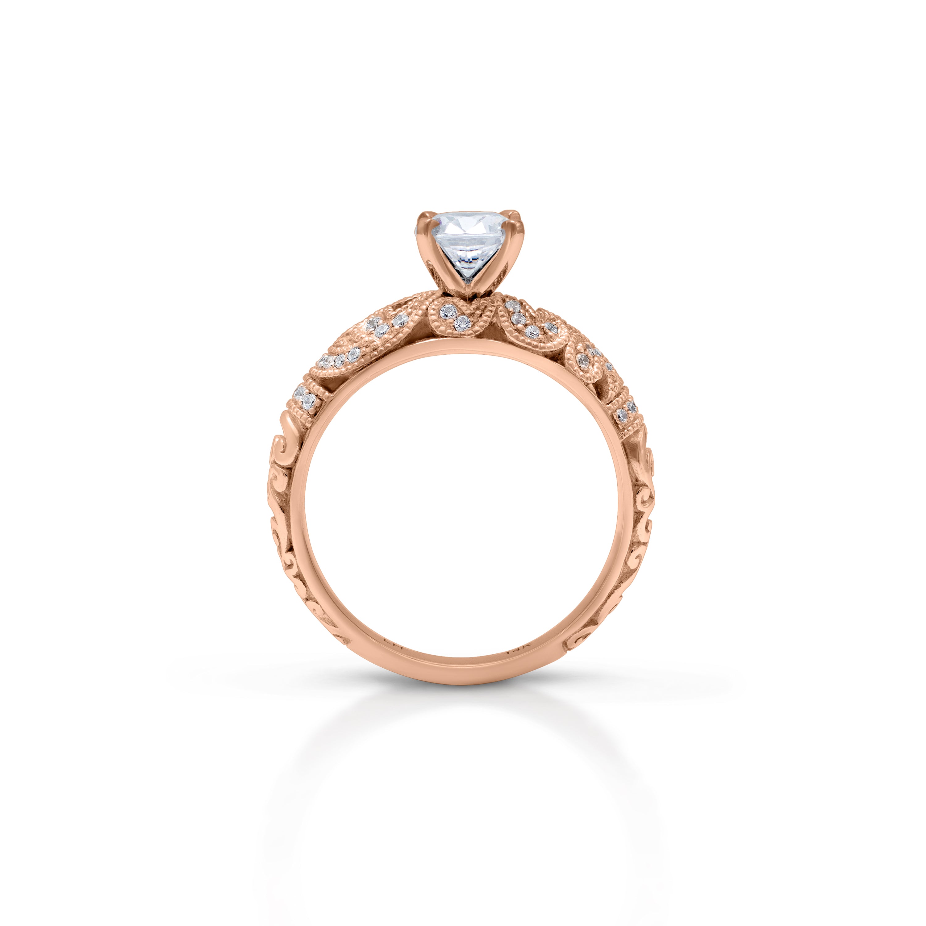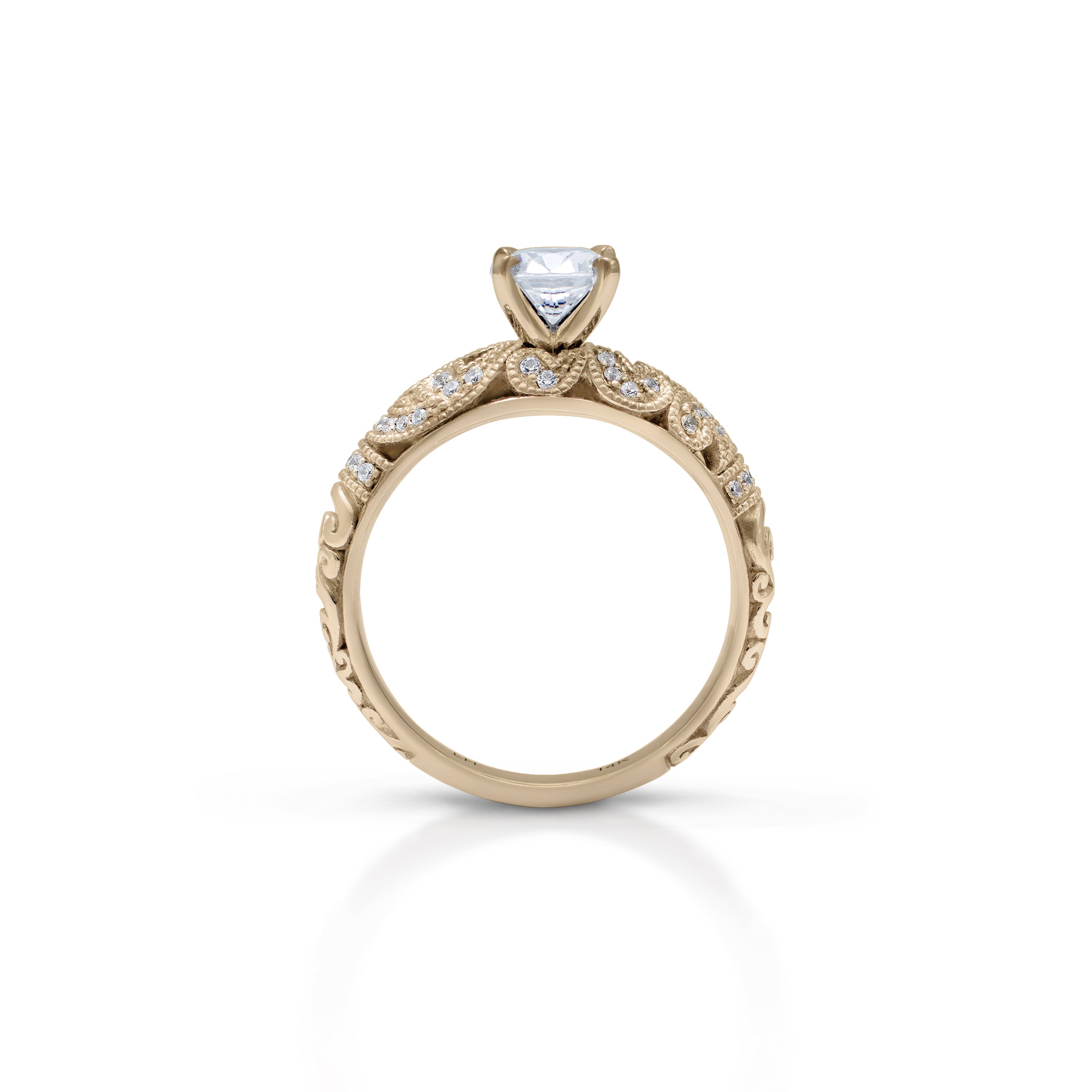 18K/ 14K Gold 3.5 mm LH Diamond Milgrain Scroll Solitaire Engagement Ring