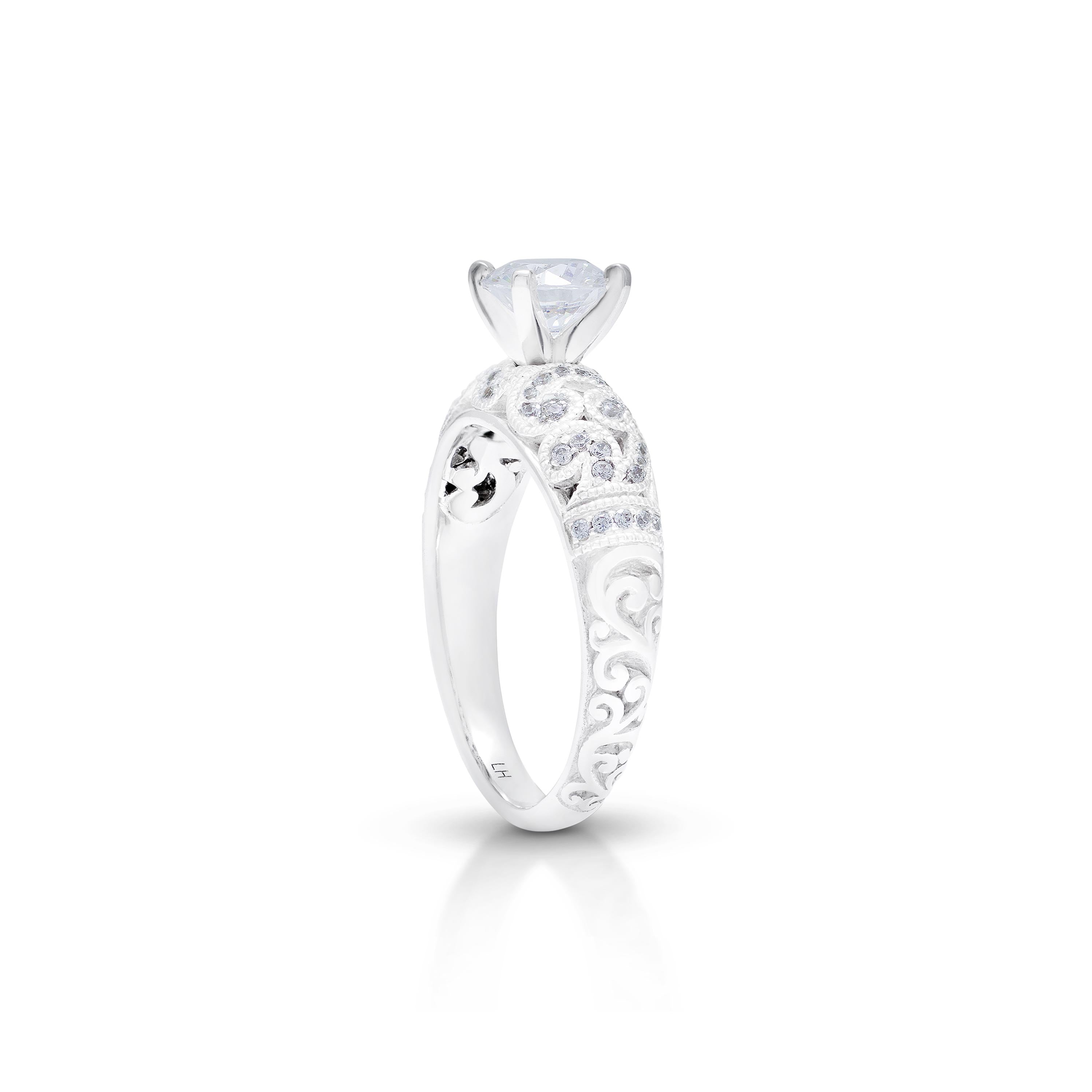 Captivatingly beautiful, this Lois Hill Full Diamond Milgrain Scroll 0.18 ct Engagement Ring is a true testament to eternal love.  Elegantly tapered and domed, this amazing ring is truly an exquisite piece, with its delicate details and radiant allure.